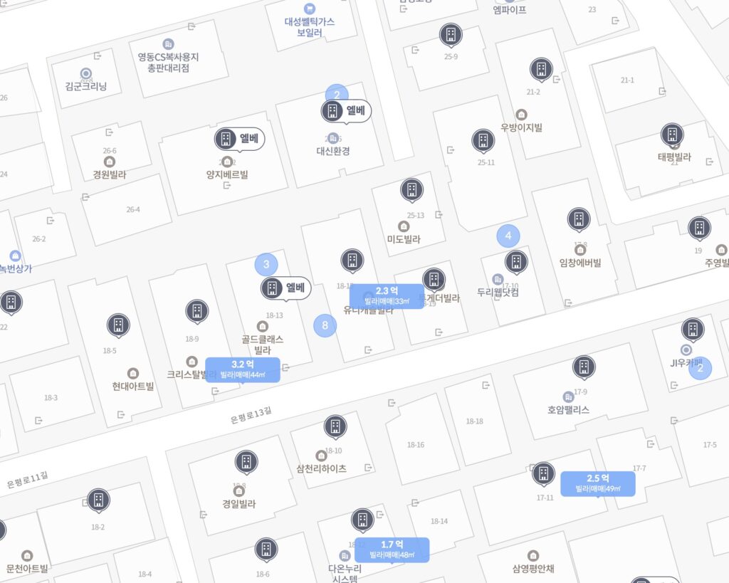 주변 매물들의 시세를 조회하다보면 원하는 지역의 빌라들의 시세를 쉽게 파악할 수 있다는 사실~!