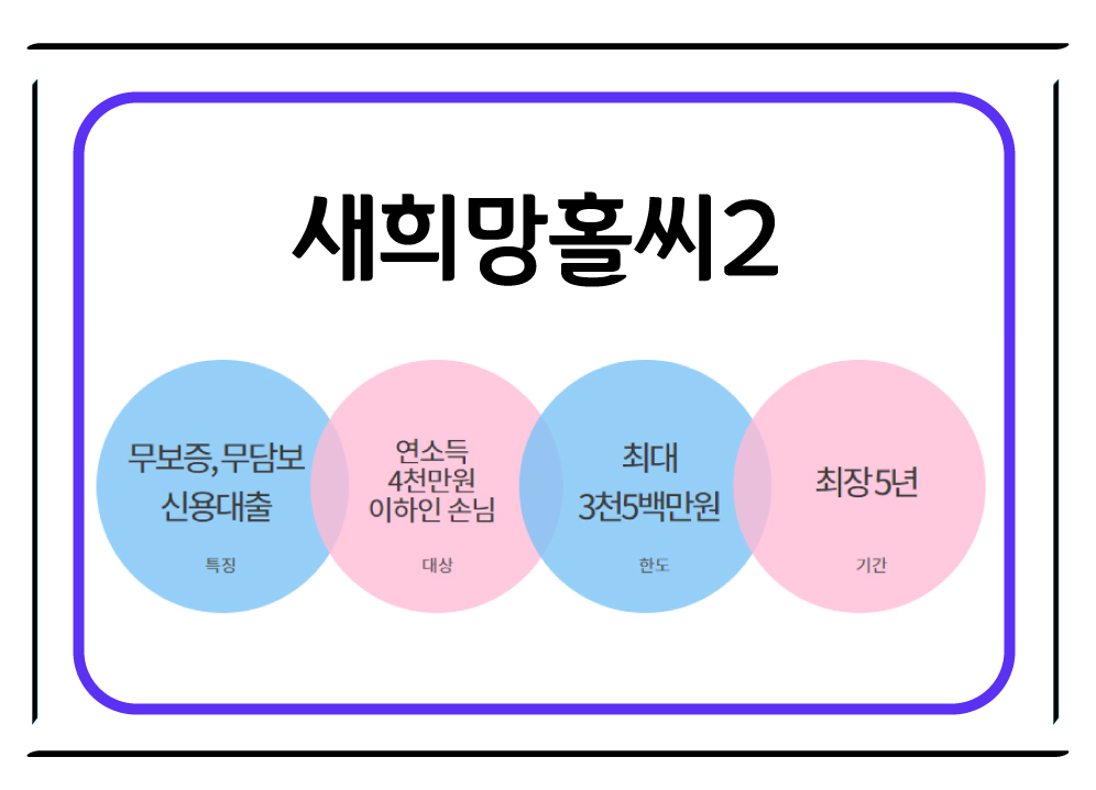 정부에서 지원하는 서민 금융 상품 중 하나로, 기존의 새희망홀씨 대출 상품에 이어 새롭게 선보인 새희망홀씨2입니다.