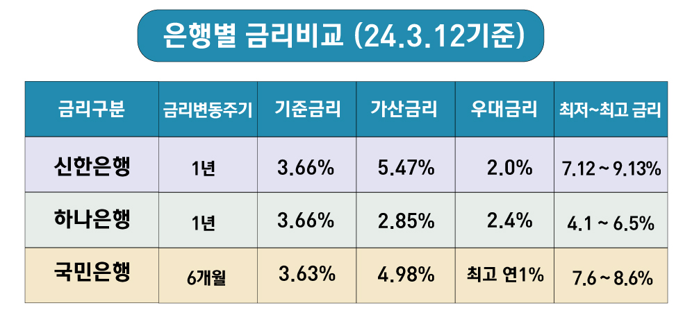 국가에서 정한 최대 상한선 내에서 취급은행들이 경쟁하고 있으며, 2024년 3월 기준으로 약 4.1%에서 6.5% 사이로 형성