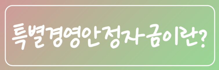 알고만 있어도, 비싼 고금리의 캐피탈 등 자금에 손을 빌리지 않아도 필요한 자금을 조달할 수 있는 정부지원정책들이 생각보다 많다는 것을 이번 경험을 통해 배우게 되었습니다. 오늘은 그 중에서도 특별경영안정자금이라는 정책에 대해서 알아보도록 하겠습니다.