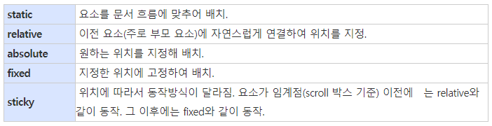 - 위에 명시적으로 position 속성을 써서 나타내지는 않았지만 position: static속성이라고 보면 된다.