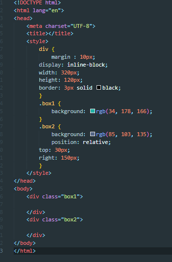 - 위에 static 예제 코드에서 position: relative로 변경을 줬더니 위치가 겹쳐지는 것을 확인할 수 있다.