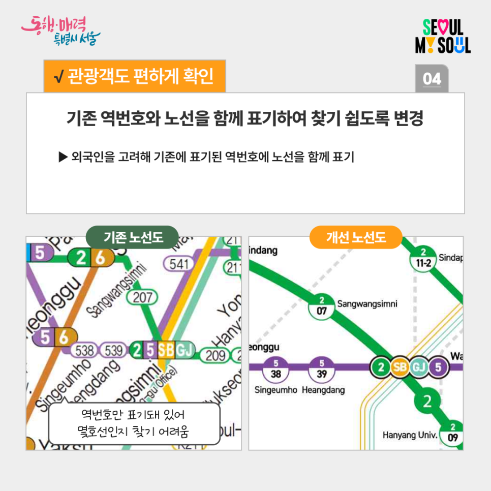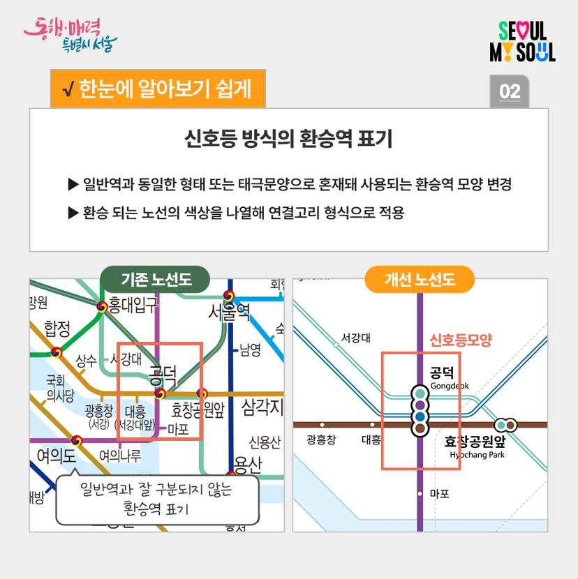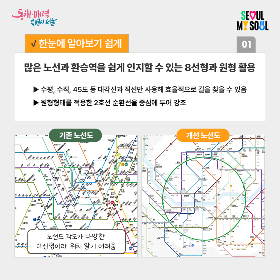 많은 노선과 환승역을 쉽게 인지할 수 있는
