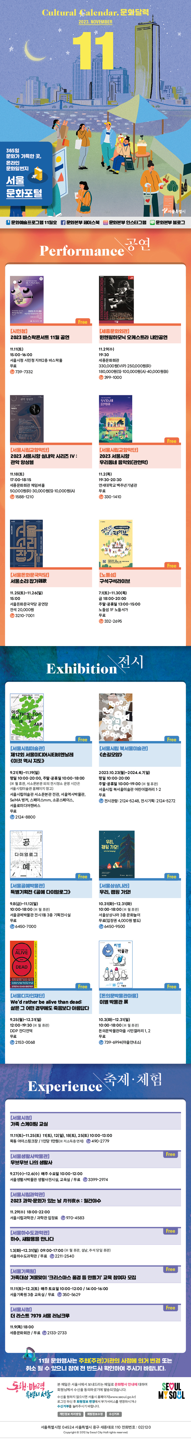 # 서울시 11월 문화달력 정보 <공연 / 전시 / 축제 & 체험 >